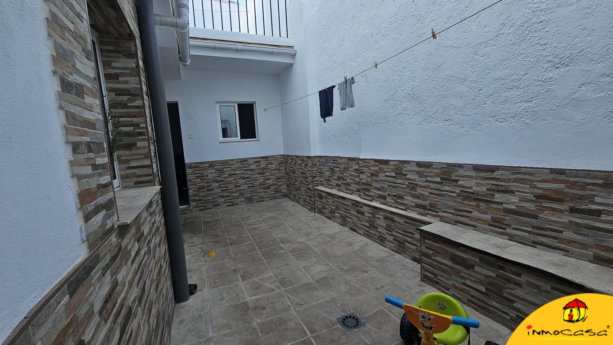 Tiene una superficie construida de 150 metros cuadrados y está reformada al completo: suelos (parcialmente) de gres, ventanas de doble acristalamiento, cocina y baños nuevos, instalaciones de electricidad y fontanería nuevas, tejado en perfecto estado…